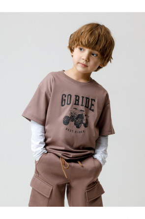 Футболка для мальчика из гладкого трикотажа, произведённого из высококачественного натурального хлопка. Для удобства одевания имеется застёжка на кнопки в размерах 92 и 98. Оригинальный принт нанесён с помощью стойких текстильных гипоаллергенных красителей. Изделие сохраняет цвет и форму после многократных стирок. Все трикотажные полотна производятся в соответствии с нормами швейцарского сертификата ЭкоТекс.