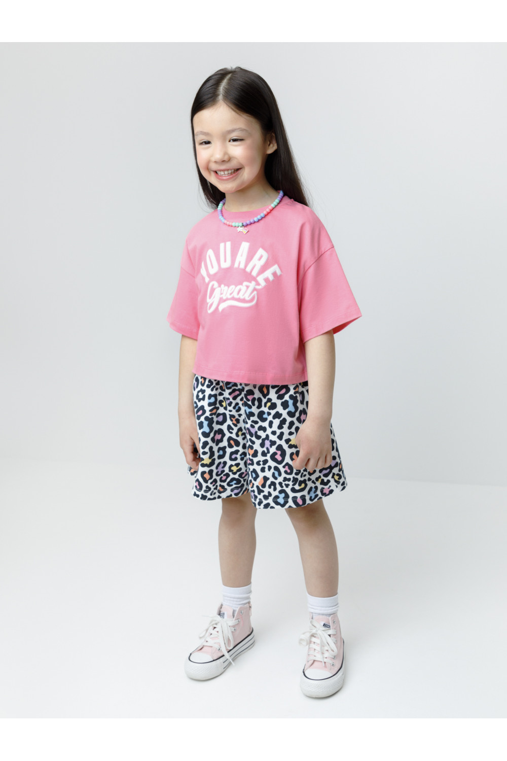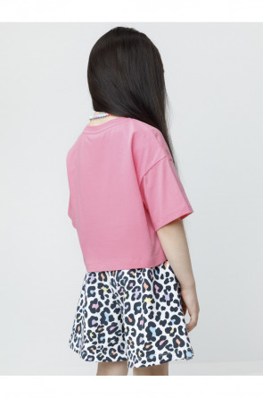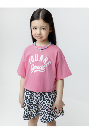 Футболка для девочки из высококачественного трикотажного полотна. Оригинальный принт выполнен из стойких текстильных гипоаллергенных красителей. Изделие сохраняет цвет и форму после многократных стирок. Все трикотажные полотна производятся в соответствии с нормами швейцарского сертификата ЭкоТекс.