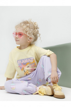 Футболка для девочки из высококачественного трикотажного полотна. Оригинальный принт выполнен из стойких текстильных гипоаллергенных красителей. Изделие сохраняет цвет и форму после многократных стирок. Все трикотажные полотна производятся в соответствии с нормами швейцарского сертификата ЭкоТекс.