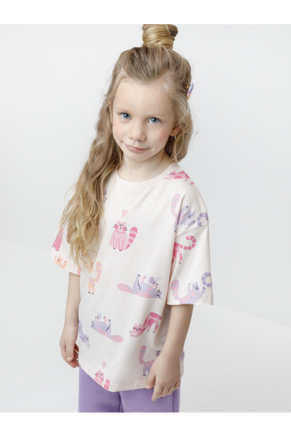 Футболка для девочки из высококачественного трикотажного полотна. Оригинальный рисунок выполнен из стойких текстильных гипоаллергенных красителей. Изделие сохраняет цвет и форму после многократных стирок. Все трикотажные полотна производятся в соответствии с нормами швейцарского сертификата ЭкоТекс.