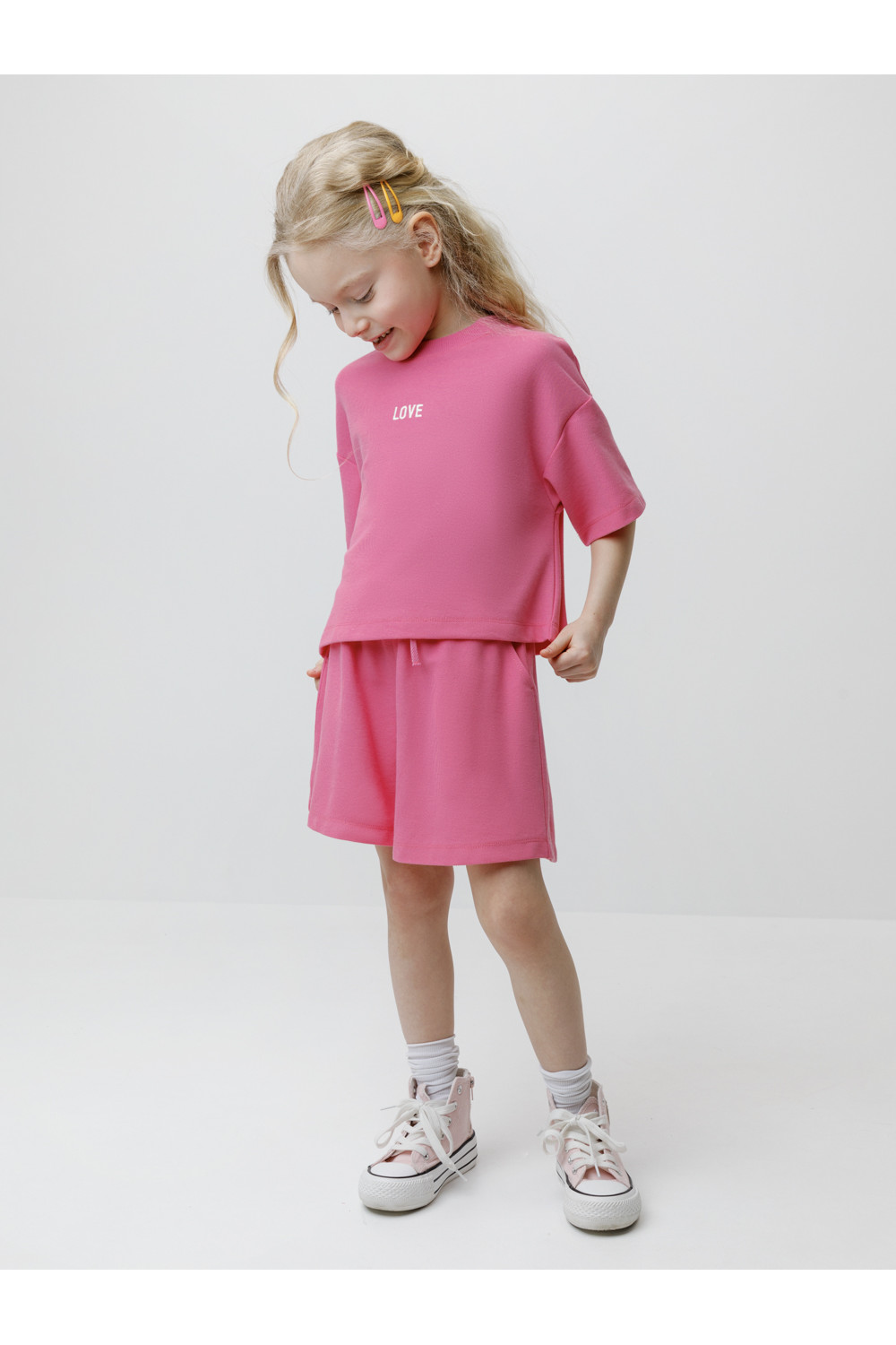 Футболка однотонная для девочки из высококачественного трикотажного полотна пике. Изделие сохраняет цвет и форму после многократных стирок. Все трикотажные полотна производятся в соответствии с нормами швейцарского сертификата ЭкоТекс.
