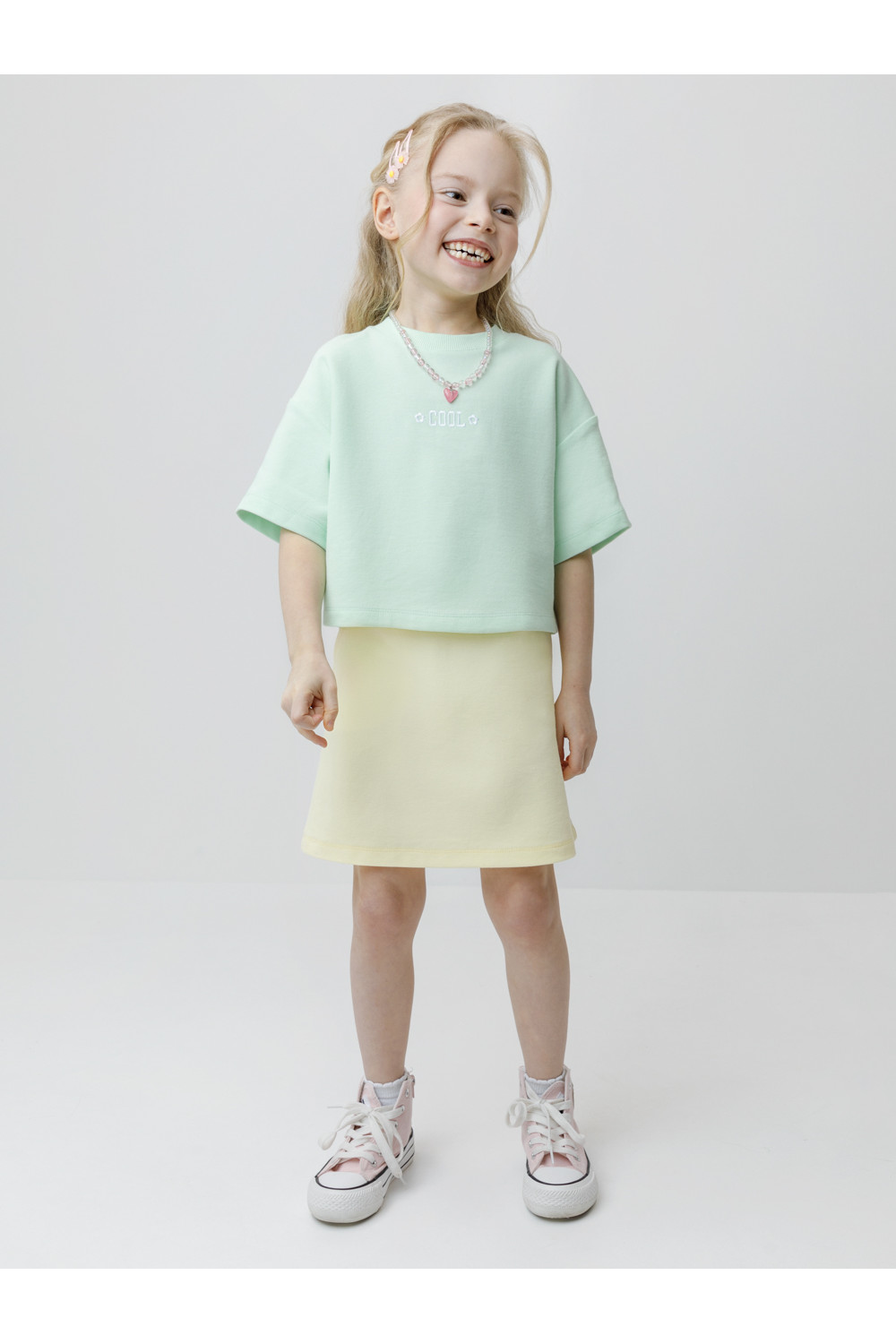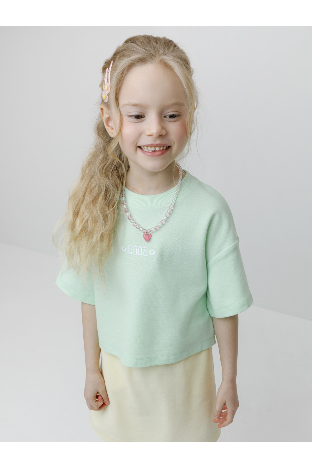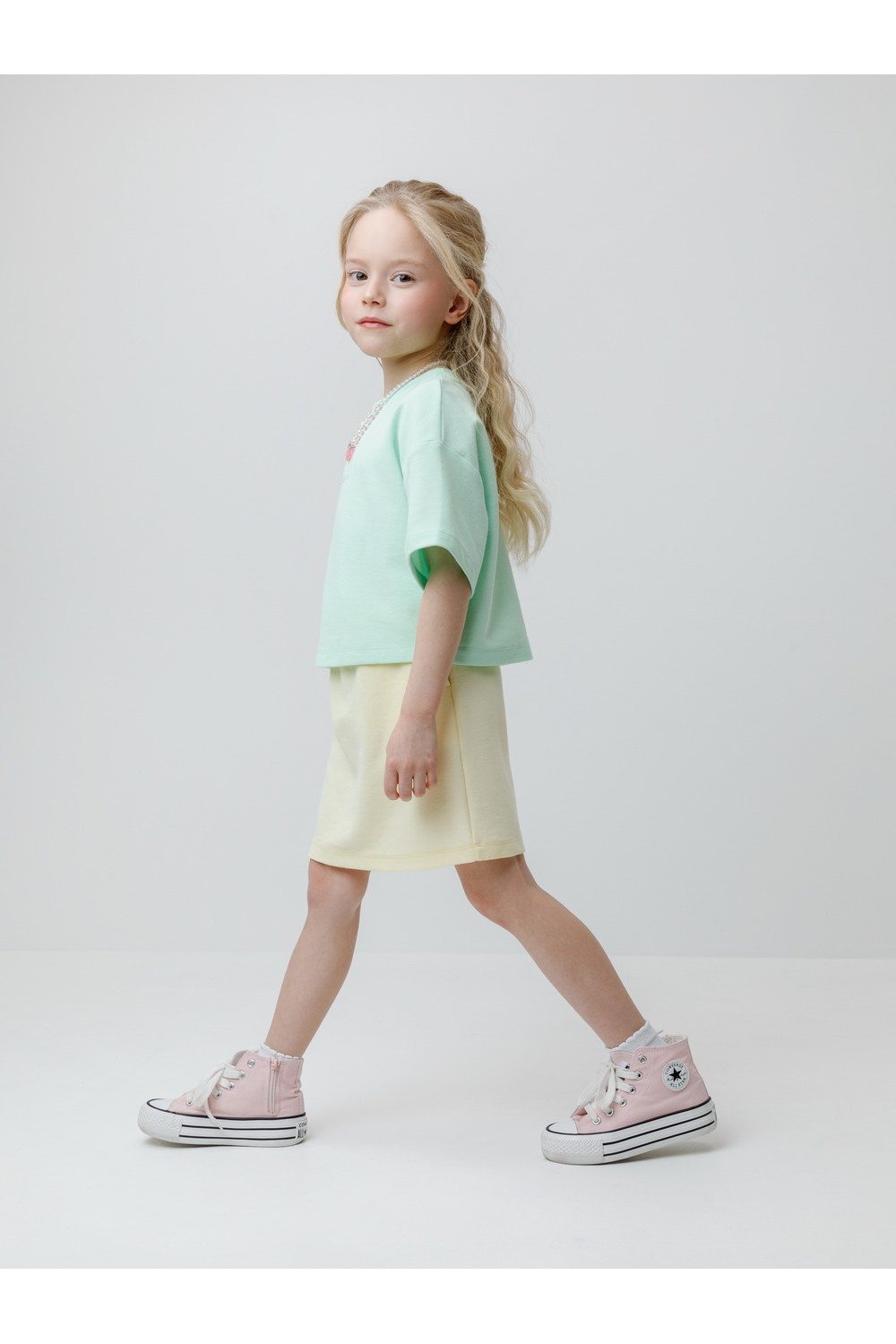 Футболка однотонная для девочки из высококачественного трикотажного полотна пике. Изделие сохраняет цвет и форму после многократных стирок. Все трикотажные полотна производятся в соответствии с нормами швейцарского сертификата ЭкоТекс.