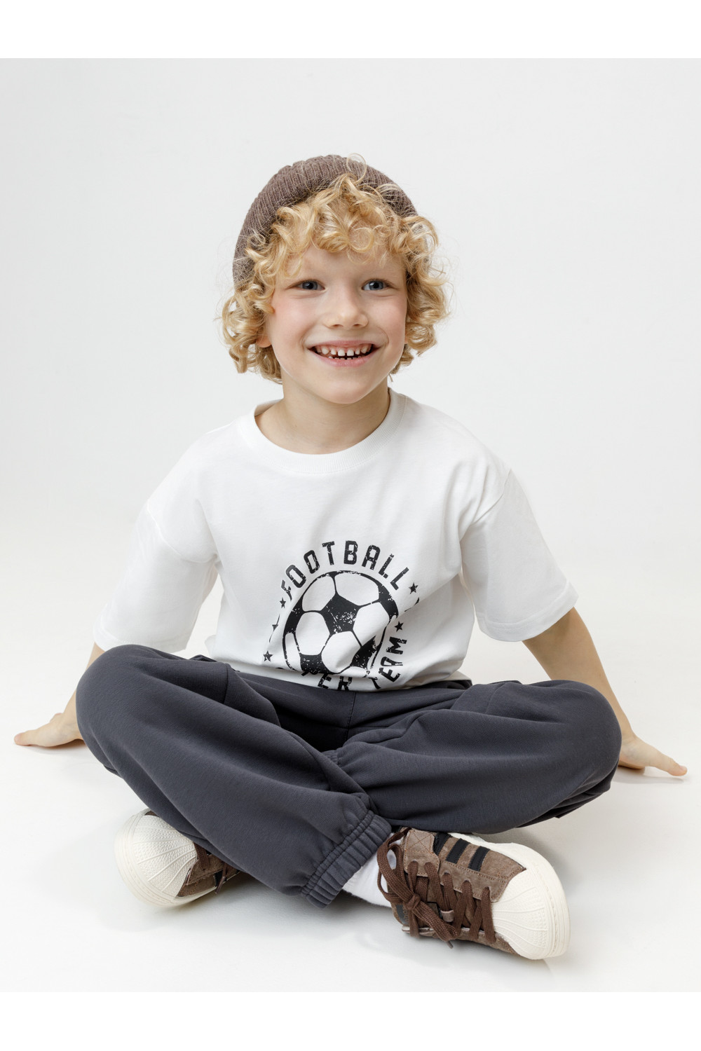 Футболка для мальчика из высококачественного трикотажного полотна. Оригинальный принт выполнен из стойких текстильных красителей. Изделие сохраняет цвет и форму после многократных стирок. Все трикотажные полотна производятся в соответствии с нормами швейцарского сертификата ЭкоТекс.