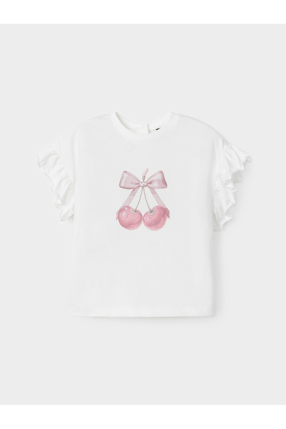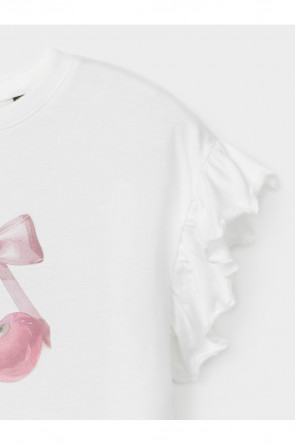 Футболка для девочки с нарядными рюшами из высококачественного трикотажного полотна, изготовленного из натурального хлопка. Изделие сохраняет цвет и форму после многократных стирок. Все трикотажные полотна производятся в соответствии с нормами швейцарского сертификата ЭкоТекс.