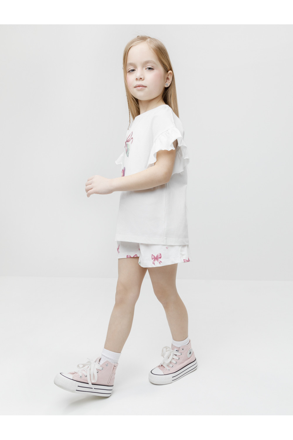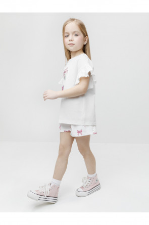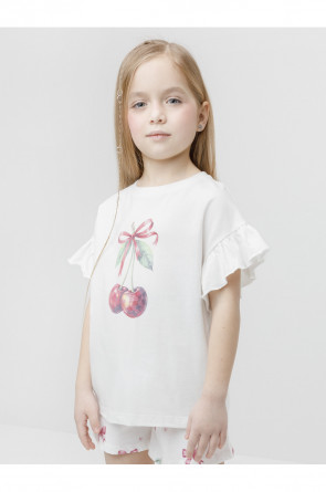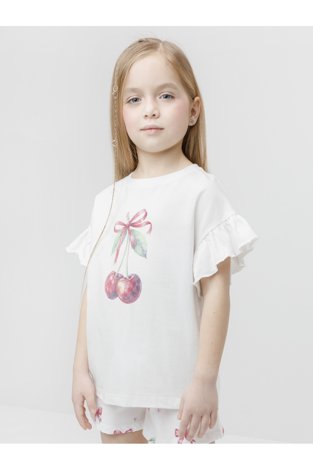 Футболка с воздушными крылышками для девочки. Изготовлена из высококачественного трикотажного полотна. Оригинальный рисунок выполнен из стойких текстильных гипоаллергенных красителей. Изделие сохраняет цвет и форму после многократных стирок. Все трикотажные полотна производятся в соответствии с нормами швейцарского сертификата ЭкоТекс.