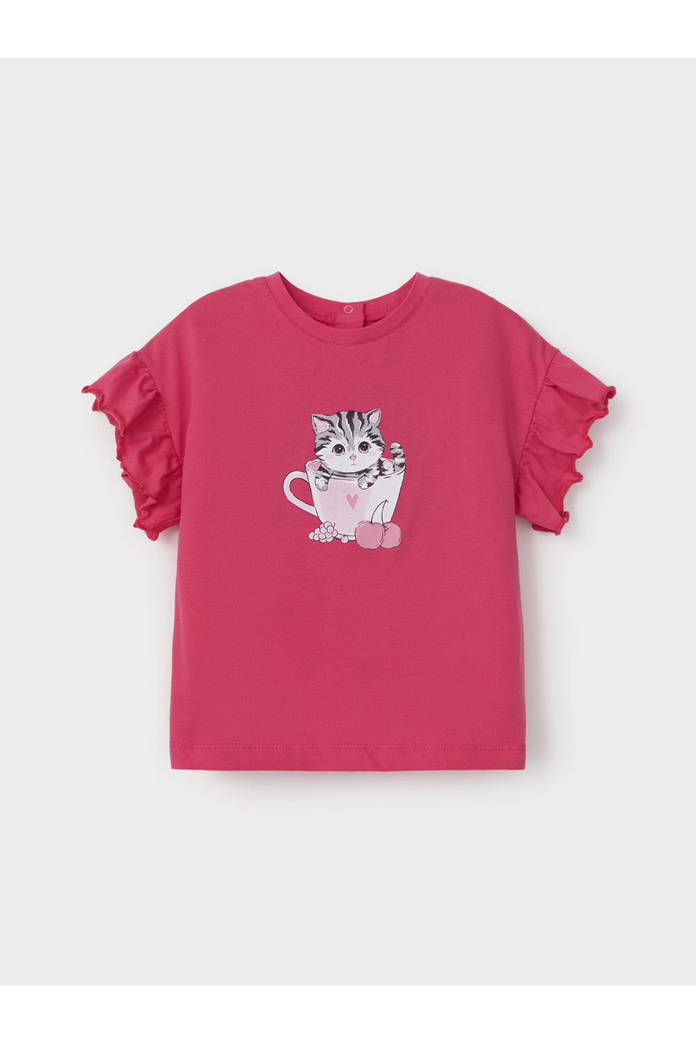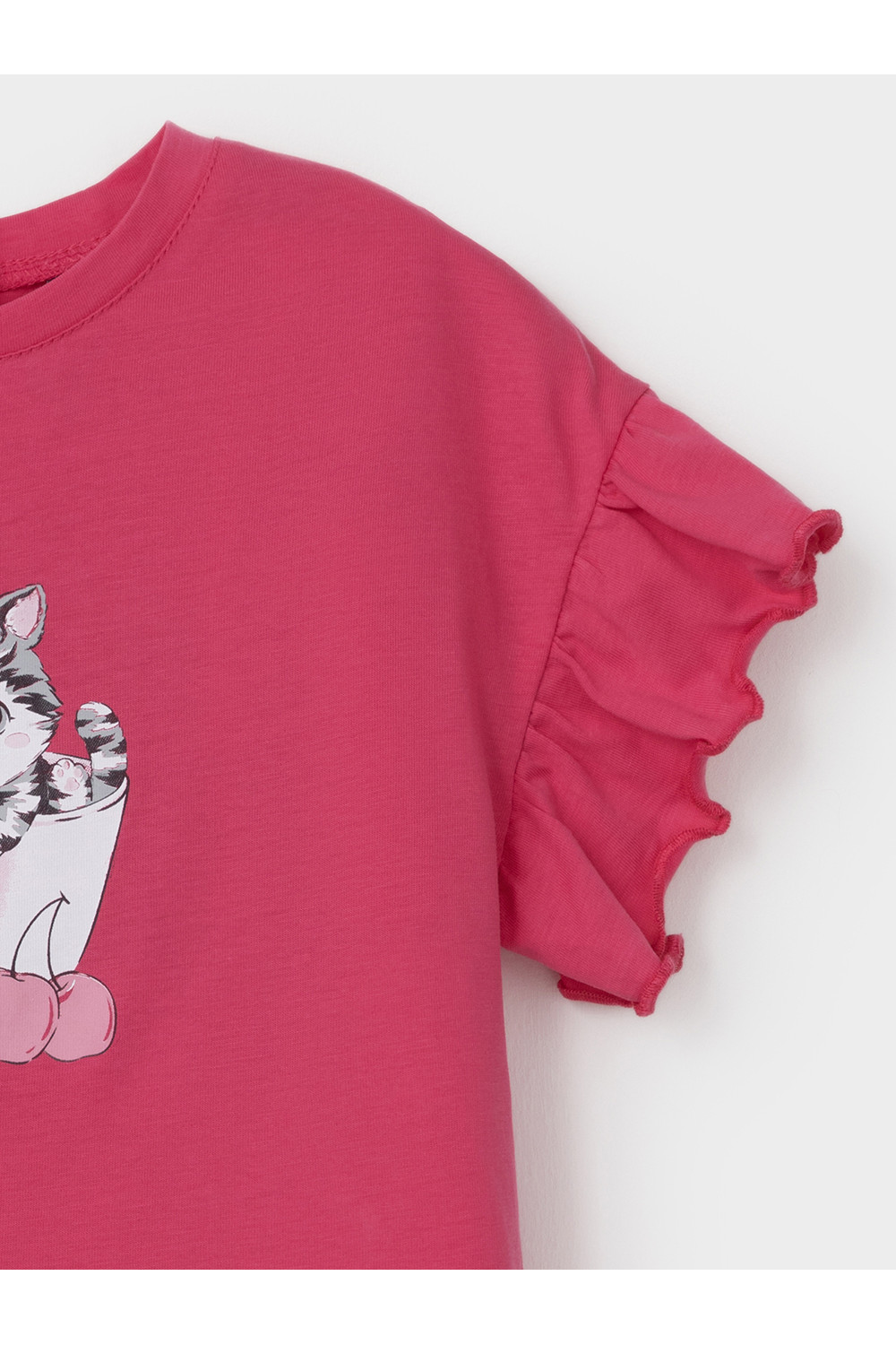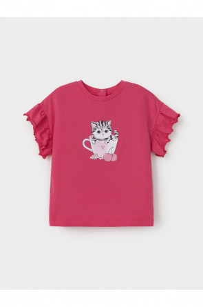 Футболка для девочки с нарядными рюшами из высококачественного трикотажного полотна, изготовленного из натурального хлопка. Изделие сохраняет цвет и форму после многократных стирок. Все трикотажные полотна производятся в соответствии с нормами швейцарского сертификата ЭкоТекс.