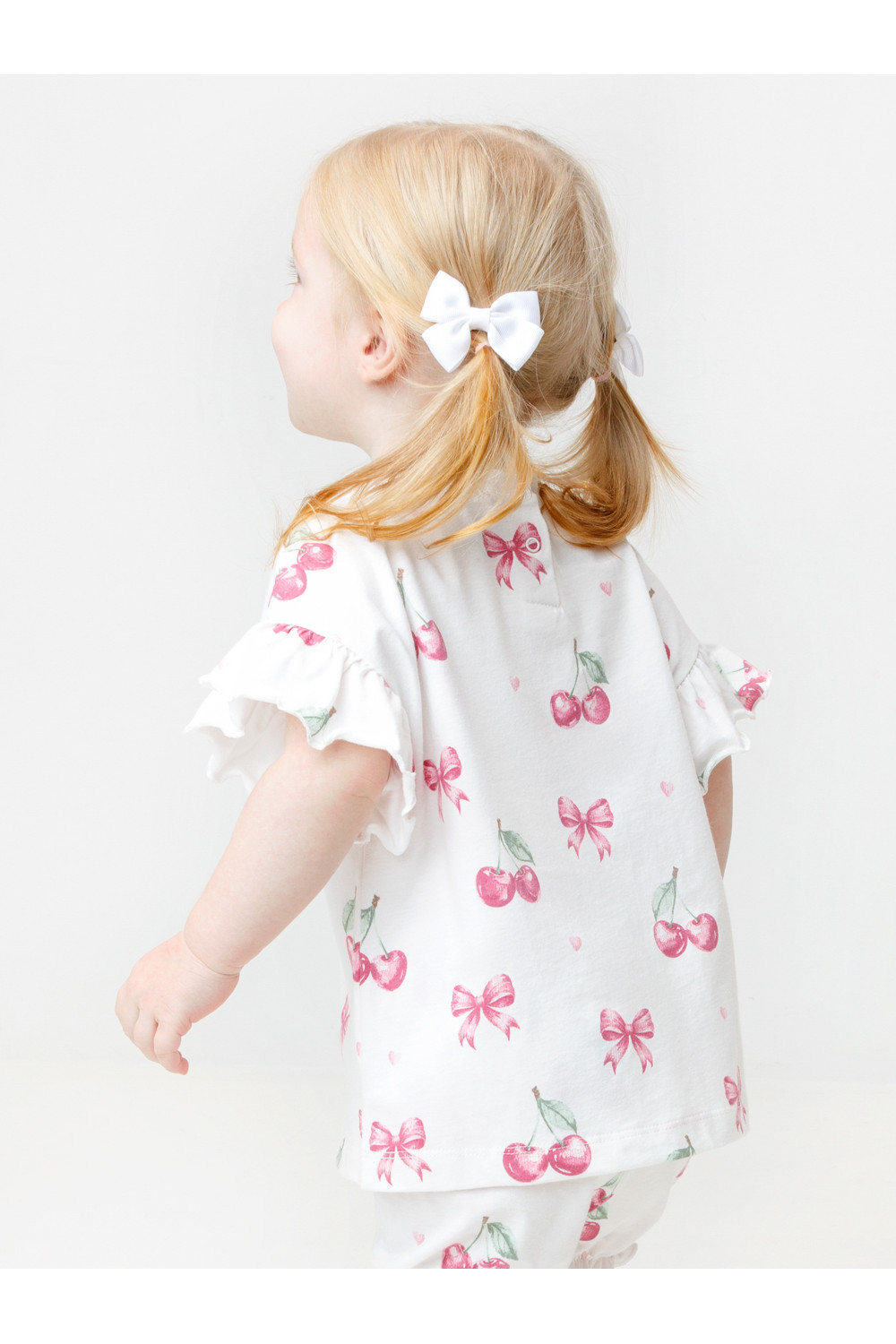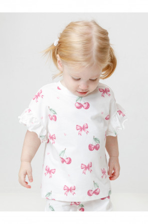 Футболка для девочки с нарядными рюшами из высококачественного трикотажного полотна, изготовленного из натурального хлопка. Изделие сохраняет цвет и форму после многократных стирок. Все трикотажные полотна производятся в соответствии с нормами швейцарского сертификата ЭкоТекс.