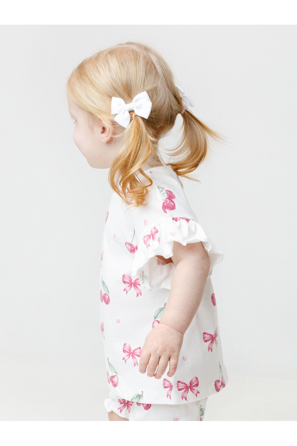 Футболка для девочки с нарядными рюшами из высококачественного трикотажного полотна, изготовленного из натурального хлопка. Изделие сохраняет цвет и форму после многократных стирок. Все трикотажные полотна производятся в соответствии с нормами швейцарского сертификата ЭкоТекс.