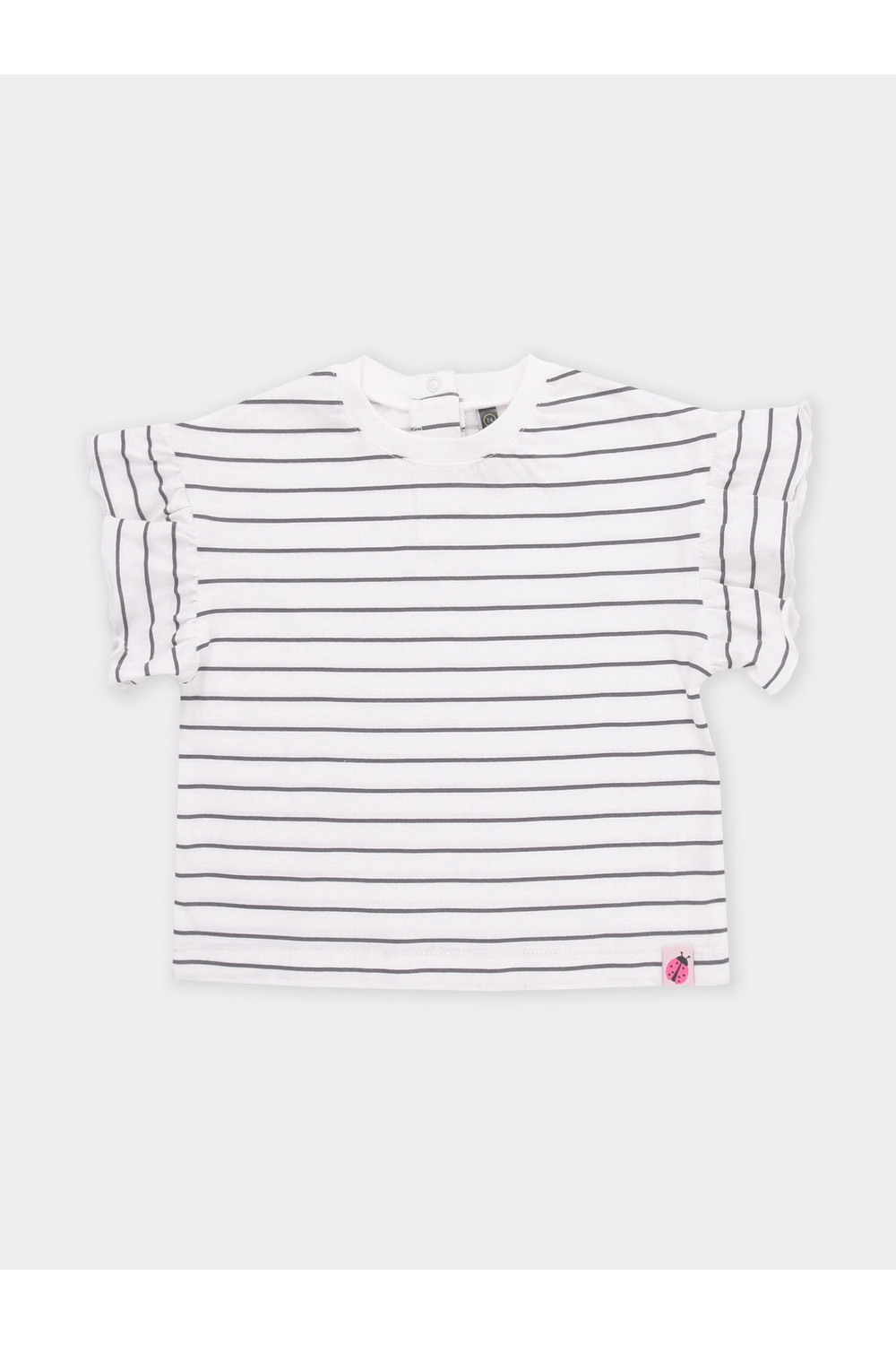 Футболка для девочки с нарядными рюшами из высококачественного трикотажного полотна, изготовленного из натурального хлопка. Изделие сохраняет цвет и форму после многократных стирок. Все трикотажные полотна производятся в соответствии с нормами швейцарского сертификата ЭкоТекс.