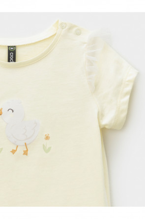 Футболка для девочки из высококачественного трикотажного полотна. Застёгивается на плече на кнопки. Оригинальный принт выполнен из стойких текстильных гипоаллергенных красителей. Изделие сохраняет цвет и форму после многократных стирок. Все трикотажные полотна производятся в соответствии с нормами швейцарского сертификата ЭкоТекс.