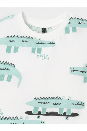 Футболка для мальчика из высококачественного трикотажного полотна. Застёгивается на плече на кнопки. Оригинальный рисунок выполнен из стойких текстильных красителей. Изделие сохраняет цвет и форму после многократных стирок. Все трикотажные полотна производятся в соответствии с нормами швейцарского сертификата ЭкоТекс.