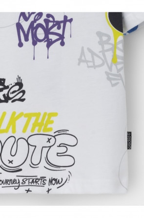 Футболка для мальчика из высококачественного трикотажного полотна. Оригинальный рисунок выполнен из стойких текстильных красителей. Изделие сохраняет цвет и форму после многократных стирок. Все трикотажные полотна производятся в соответствии с нормами швейцарского сертификата ЭкоТекс.