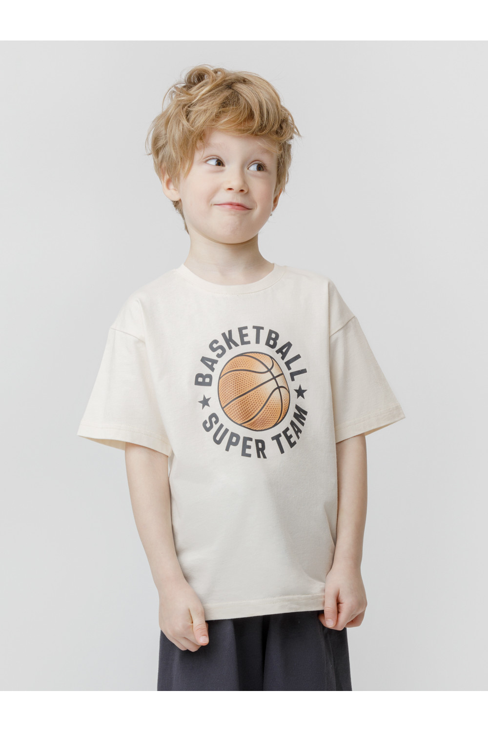 Футболка для мальчика из высококачественного трикотажного полотна. Оригинальный принт выполнен из стойких текстильных красителей. Изделие сохраняет цвет и форму после многократных стирок. Все трикотажные полотна производятся в соответствии с нормами швейцарского сертификата ЭкоТекс.