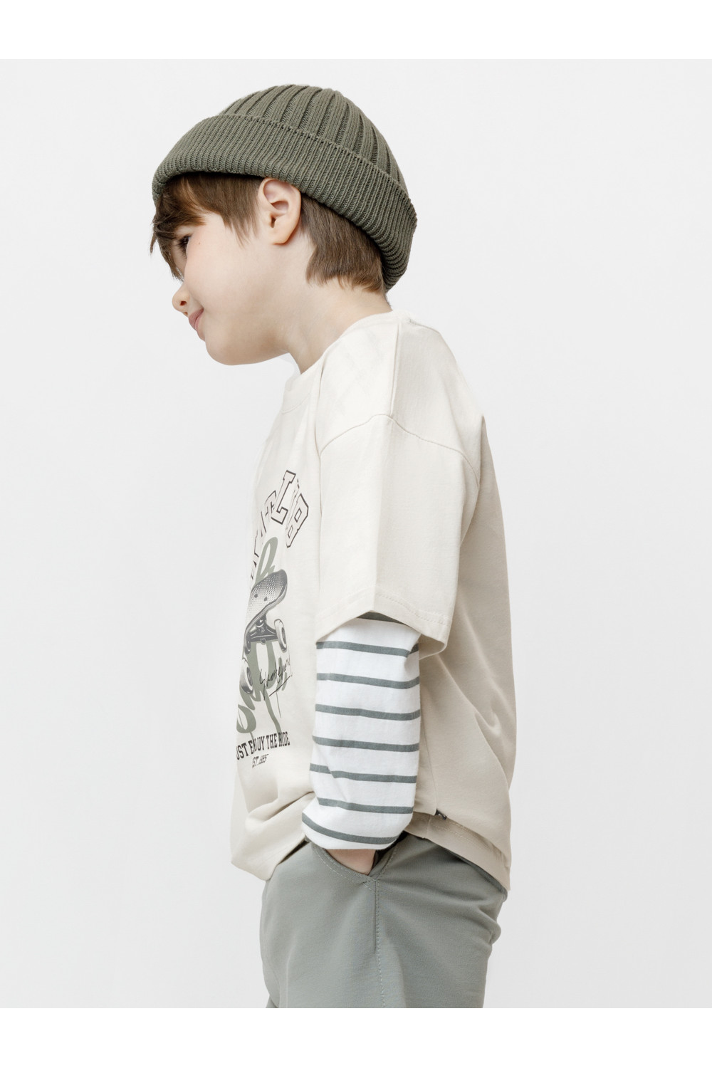 Футболка для мальчика из высококачественного трикотажного полотна. Оригинальный принт выполнен из стойких текстильных красителей. Изделие сохраняет цвет и форму после многократных стирок. Все трикотажные полотна производятся в соответствии с нормами швейцарского сертификата ЭкоТекс.