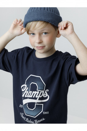 Футболка для мальчика из высококачественного трикотажного полотна. Оригинальный принт выполнен из стойких текстильных красителей. Изделие сохраняет цвет и форму после многократных стирок. Все трикотажные полотна производятся в соответствии с нормами швейцарского сертификата ЭкоТекс.