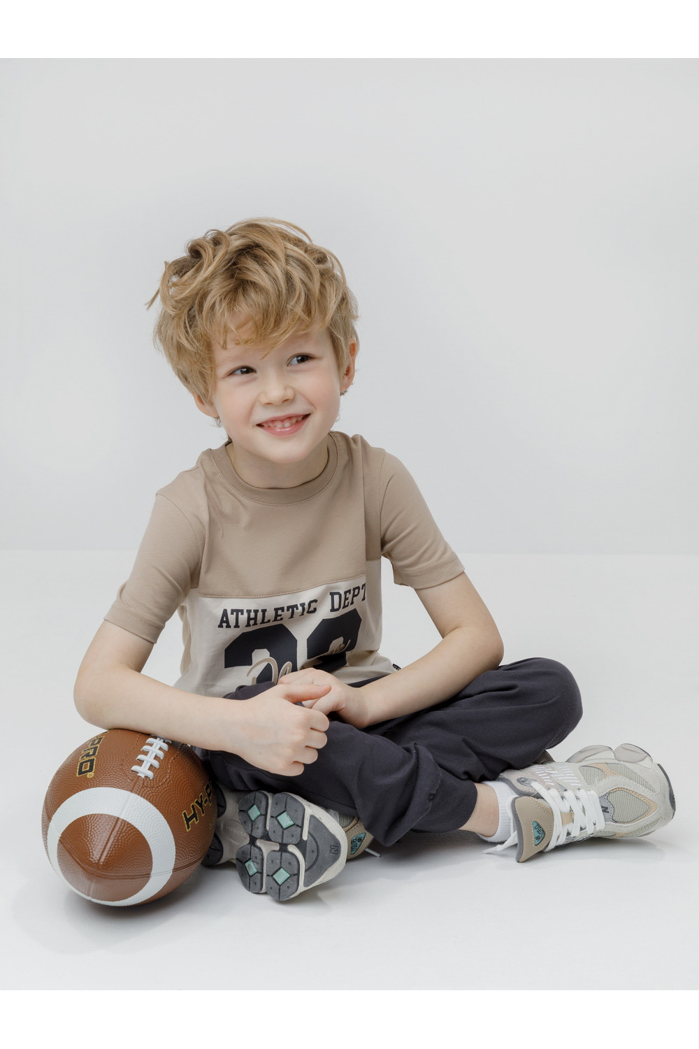 Футболка для мальчика из высококачественного трикотажного полотна. Оригинальный принт выполнен из стойких текстильных красителей. Изделие сохраняет цвет и форму после многократных стирок. Все трикотажные полотна производятся в соответствии с нормами швейцарского сертификата ЭкоТекс.