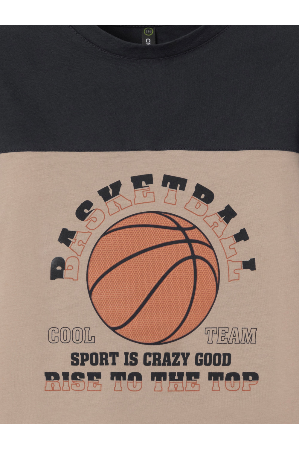 Футболка для мальчика из высококачественного трикотажного полотна. Оригинальный принт выполнен из стойких текстильных красителей. Изделие сохраняет цвет и форму после многократных стирок. Все трикотажные полотна производятся в соответствии с нормами швейцарского сертификата ЭкоТекс.