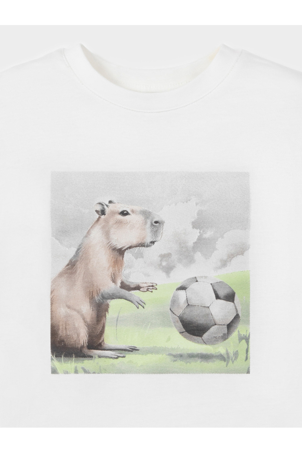 Футболка для мальчика из высококачественного трикотажного полотна. Оригинальный принт выполнен из стойких текстильных красителей. Изделие сохраняет цвет и форму после многократных стирок. Все трикотажные полотна производятся в соответствии с нормами швейцарского сертификата ЭкоТекс.