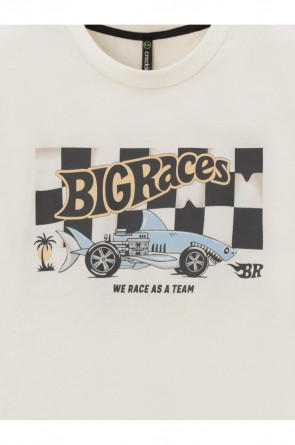 Футболка для мальчика из высококачественного трикотажного полотна. Оригинальный принт выполнен из стойких текстильных красителей. Изделие сохраняет цвет и форму после многократных стирок. Все трикотажные полотна производятся в соответствии с нормами швейцарского сертификата ЭкоТекс.