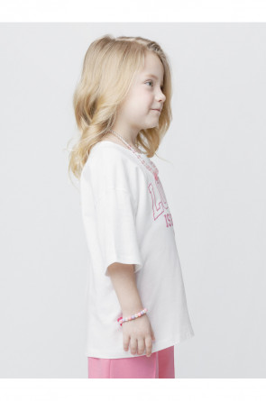 Футболка для девочки из высококачественного трикотажного полотна. Оригинальный принт выполнен из стойких текстильных гипоаллергенных красителей. Изделие сохраняет цвет и форму после многократных стирок. Все трикотажные полотна производятся в соответствии с нормами швейцарского сертификата ЭкоТекс.