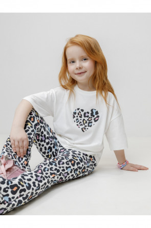 Футболка для девочки из высококачественного трикотажного полотна. Оригинальный принт выполнен из стойких текстильных гипоаллергенных красителей. Изделие сохраняет цвет и форму после многократных стирок. Все трикотажные полотна производятся в соответствии с нормами швейцарского сертификата ЭкоТекс.