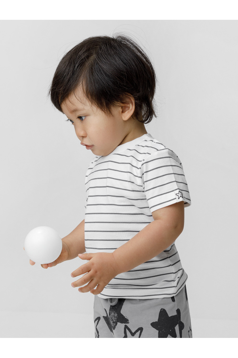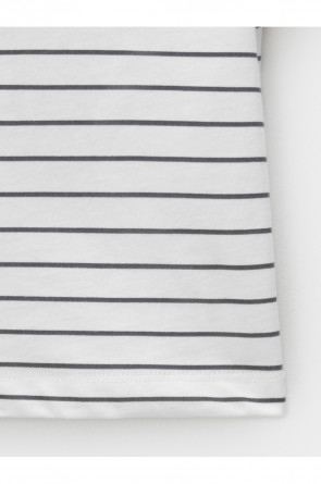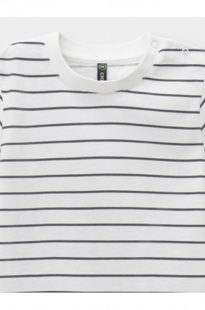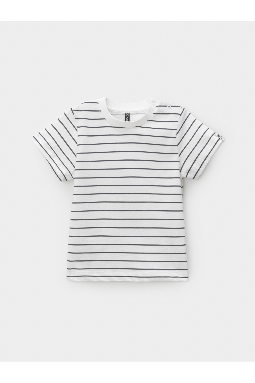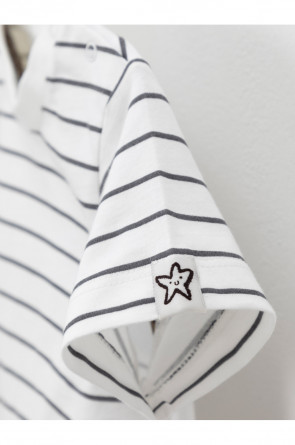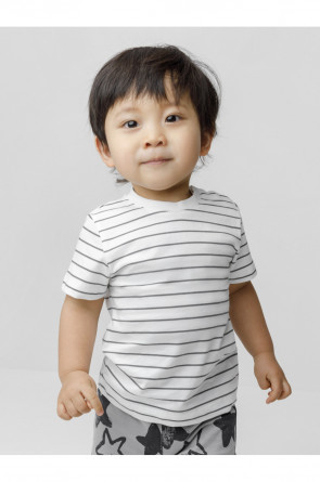 Футболка для мальчика из высококачественного трикотажного полотна. Застёгивается на кнопки на плече. Оригинальный рисунок в полоску выполнен из стойких текстильных красителей. Изделие сохраняет цвет и форму после многократных стирок. Все трикотажные полотна производятся в соответствии с нормами швейцарского сертификата ЭкоТекс.