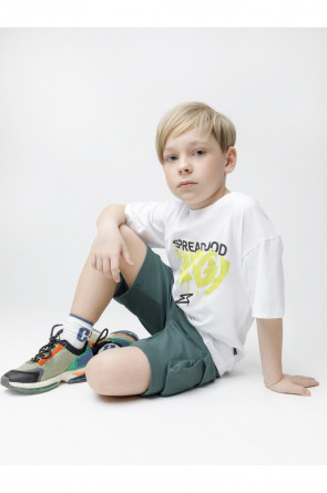 Футболка для мальчика из высококачественного трикотажного полотна. Оригинальный принт выполнен из стойких текстильных красителей. Изделие сохраняет цвет и форму после многократных стирок. Все трикотажные полотна производятся в соответствии с нормами швейцарского сертификата ЭкоТекс.