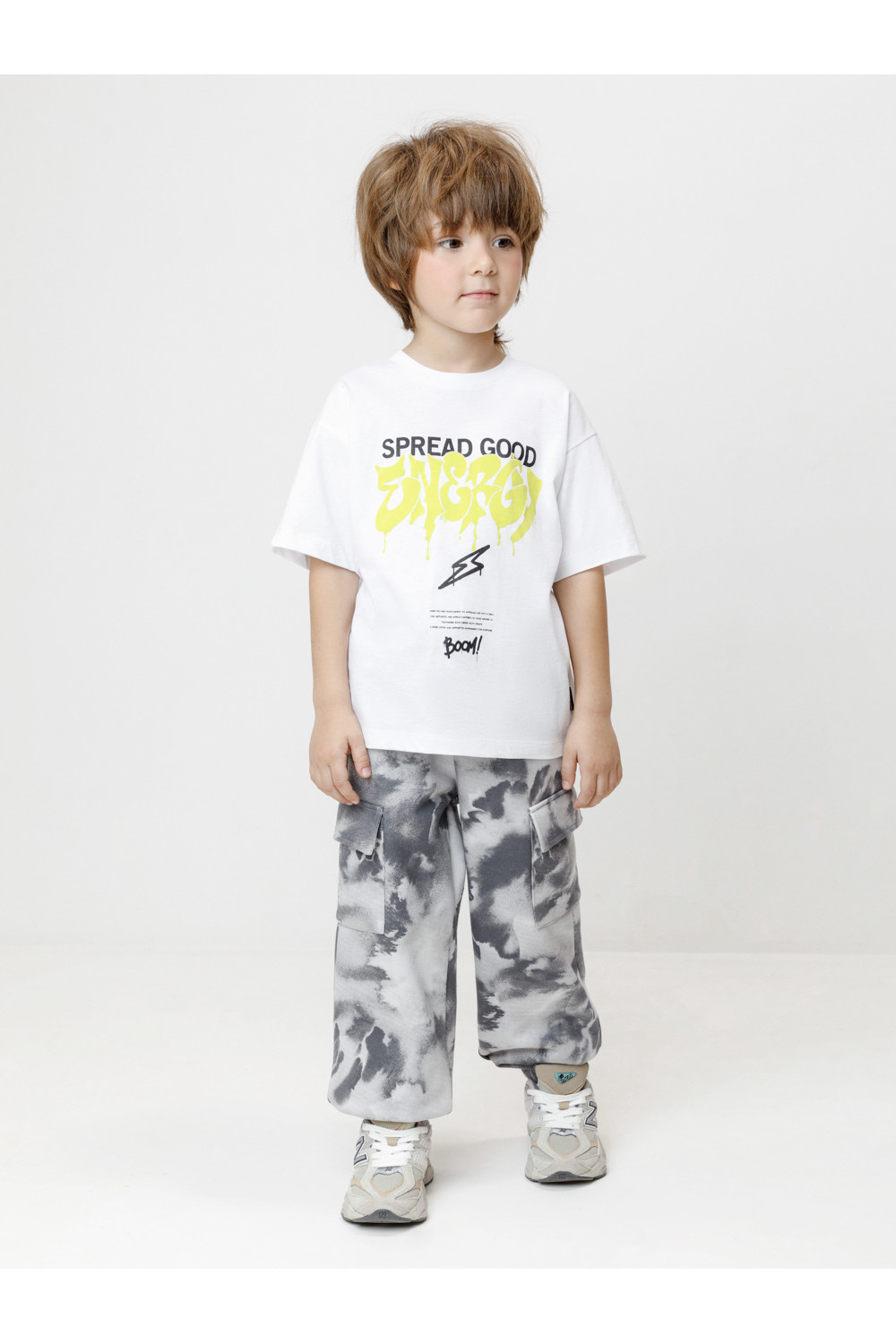 Футболка для мальчика из высококачественного трикотажного полотна. Оригинальный принт выполнен из стойких текстильных красителей. Изделие сохраняет цвет и форму после многократных стирок. Все трикотажные полотна производятся в соответствии с нормами швейцарского сертификата ЭкоТекс.