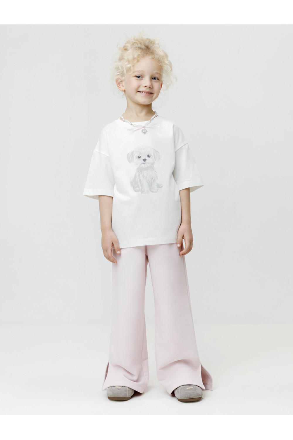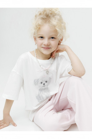 Футболка для девочки из высококачественного трикотажного полотна. Оригинальный принт выполнен из стойких текстильных гипоаллергенных красителей. Изделие сохраняет цвет и форму после многократных стирок. Все трикотажные полотна производятся в соответствии с нормами швейцарского сертификата ЭкоТекс.