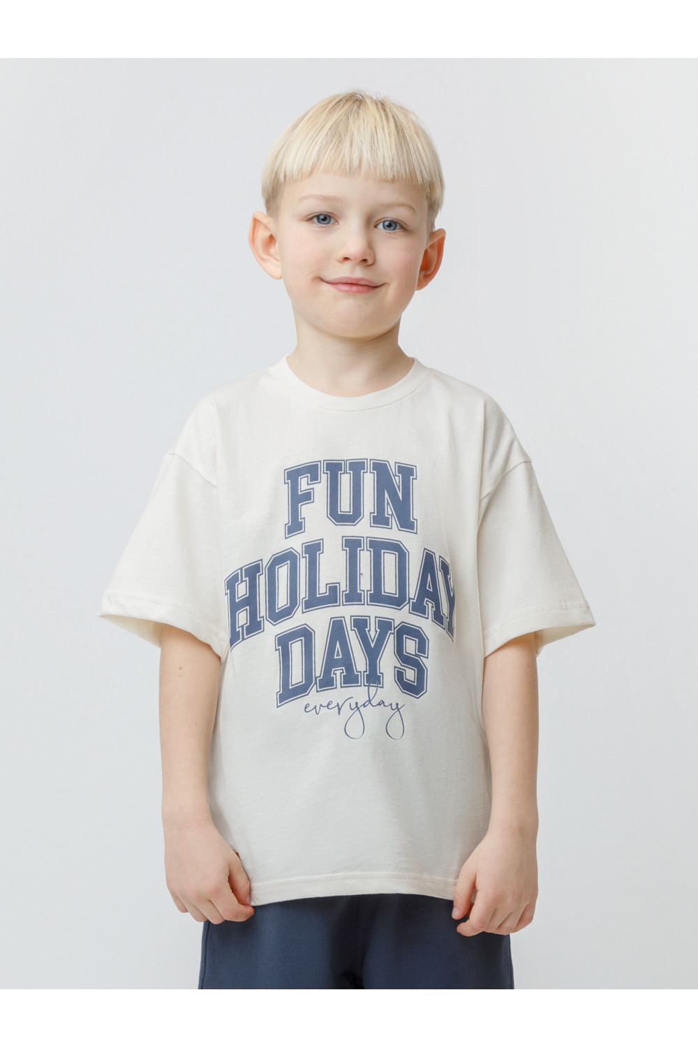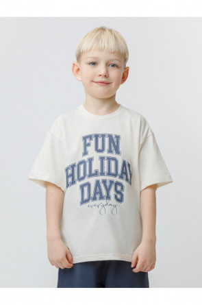 Футболка для мальчика из высококачественного трикотажного полотна. Оригинальный принт выполнен из стойких текстильных красителей. Изделие сохраняет цвет и форму после многократных стирок. Все трикотажные полотна производятся в соответствии с нормами швейцарского сертификата ЭкоТекс.