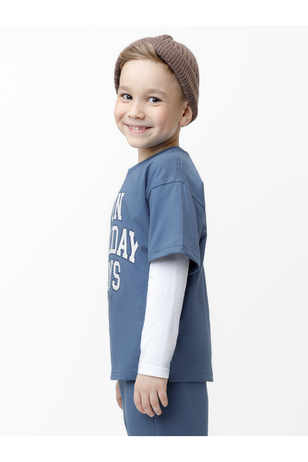 Футболка для мальчика из высококачественного трикотажного полотна. Оригинальный принт выполнен из стойких текстильных красителей. Изделие сохраняет цвет и форму после многократных стирок. Все трикотажные полотна производятся в соответствии с нормами швейцарского сертификата ЭкоТекс.