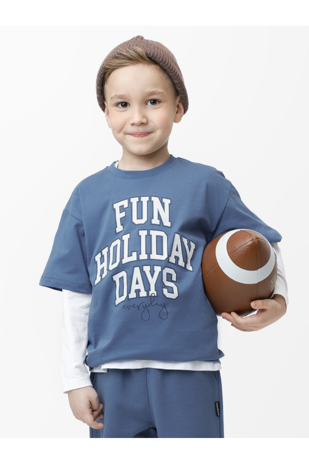 Футболка для мальчика из высококачественного трикотажного полотна. Оригинальный принт выполнен из стойких текстильных красителей. Изделие сохраняет цвет и форму после многократных стирок. Все трикотажные полотна производятся в соответствии с нормами швейцарского сертификата ЭкоТекс.