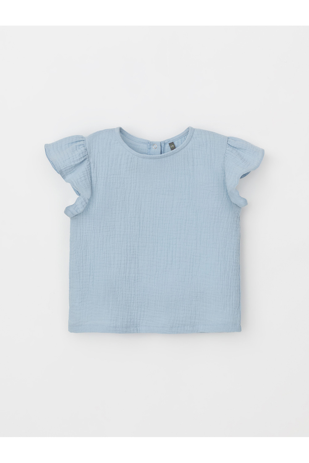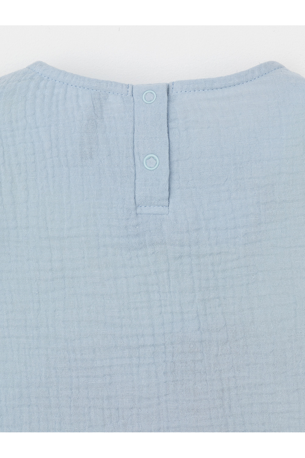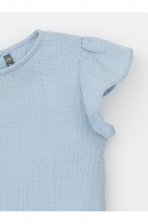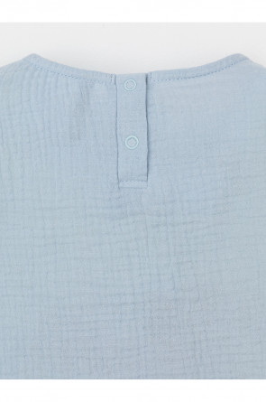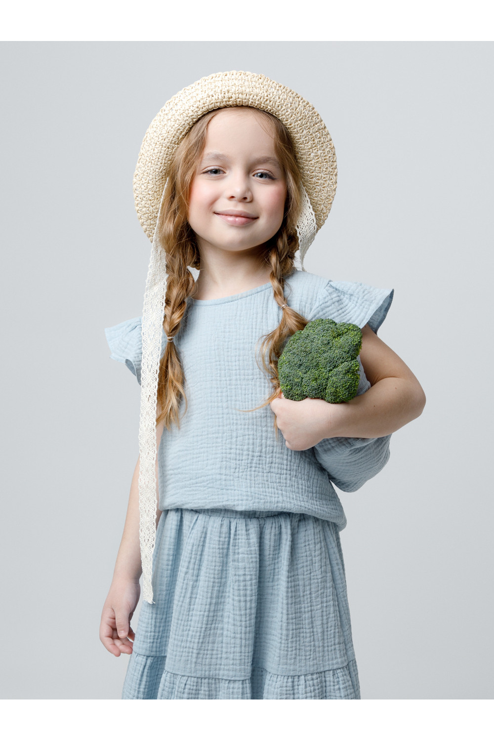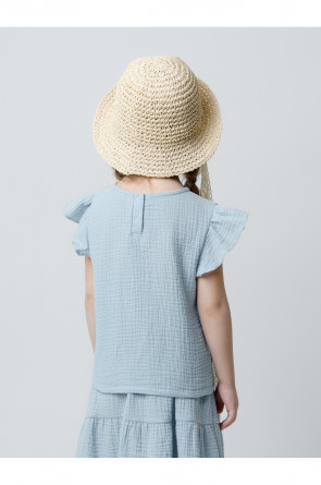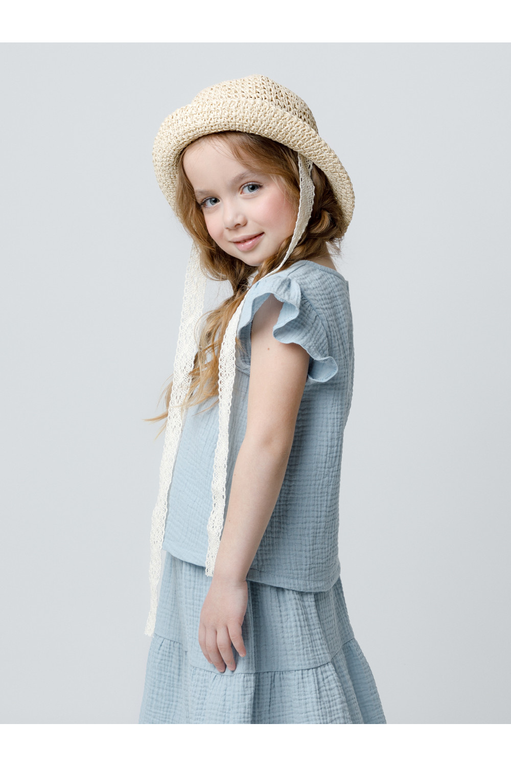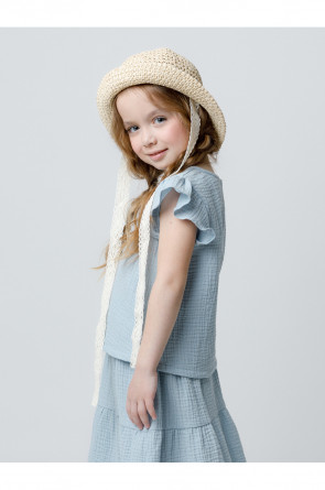 Укороченный топ для девочки из мягкого хлопокового муслина. По спинке застежка на кнопки. Изделие сохраняет цвет, форму и фактуру жатости после многократных стирок.