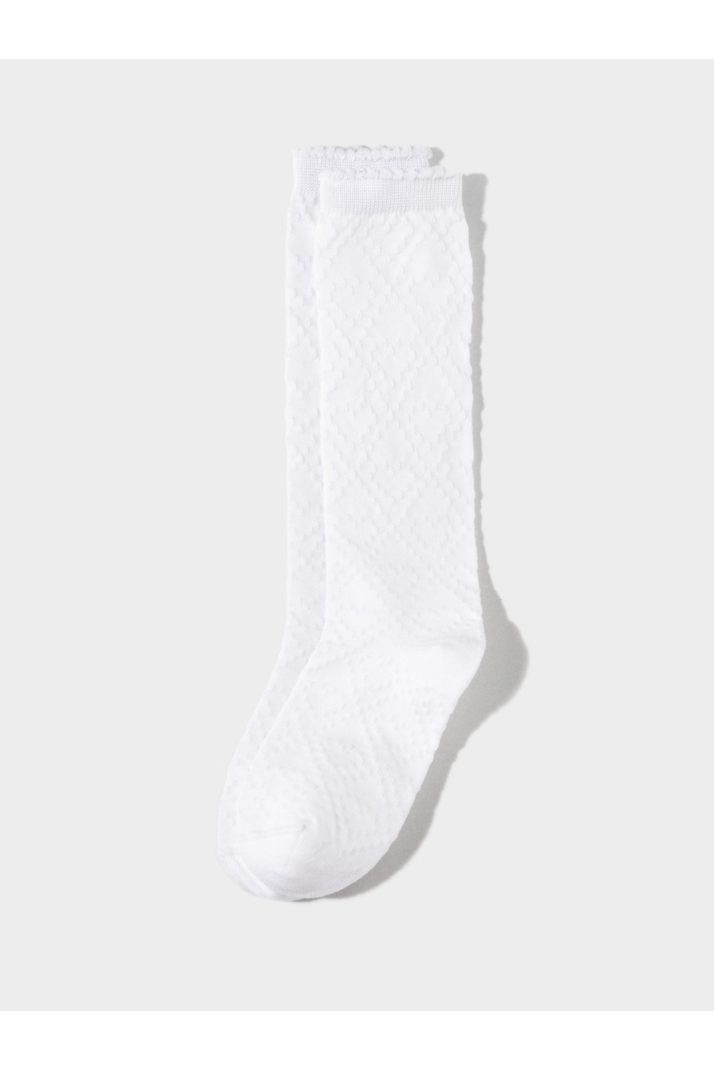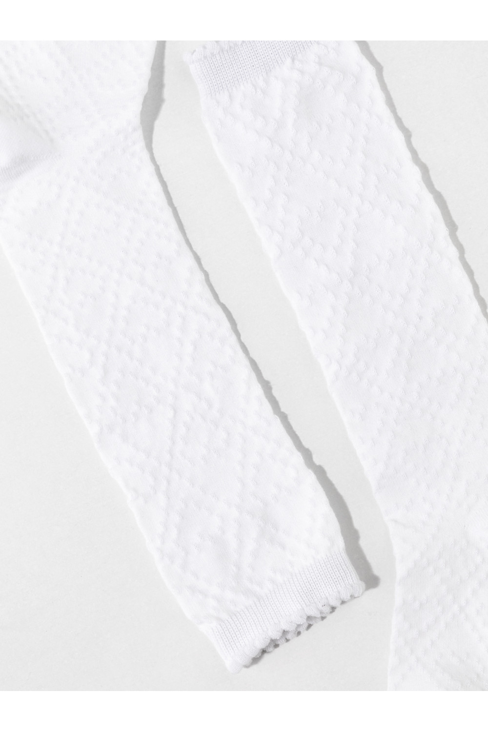 Гольфы для девочки с формованной пяткой и эластичной резинкой по краю. Связаны ажурным узором.