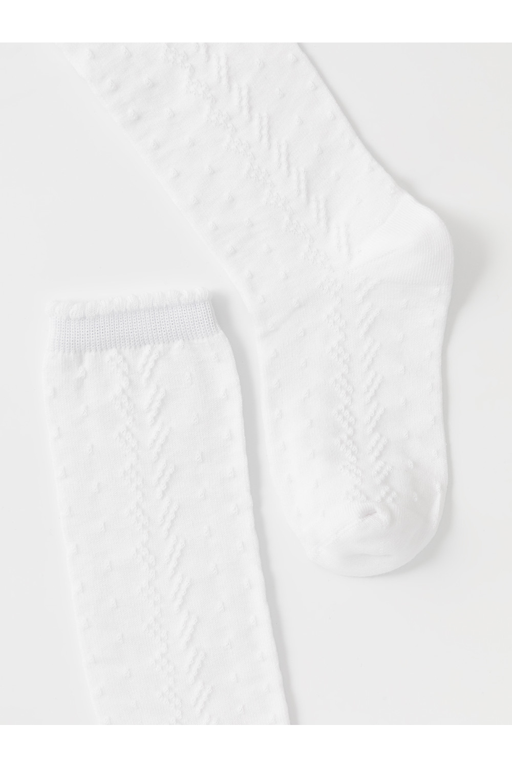 Гольфы для девочки с формованной пяткой и эластичной резинкой по краю. Связаны ажурным узором.