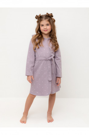 Халат с тонким капюшоном. Изготовлен из набивного хлопкового трикотажа футер петля. С помощью пояса можно регулировать посадку по фигуре. Сверху застёжка на кнопку. Края изделия обработаны мягким кантом. На боку накладной карман, уходящий в шов. Оригинальная набивка выполнена из стойких гипоаллергенных текстильных красителей. Все трикотажные полотна производятся в соответствии с нормами швейцарского сертификата ЭкоТекс.