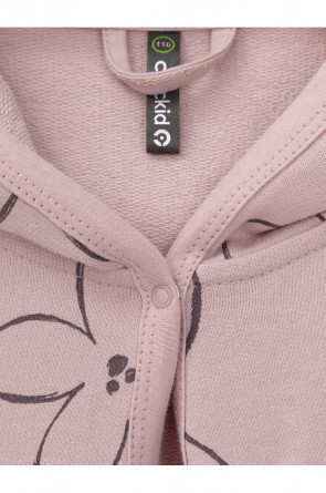 Халат с тонким капюшоном. Изготовлен из набивного хлопкового трикотажа футер петля. С помощью пояса можно регулировать посадку по фигуре. Сверху застёжка на кнопку. Края изделия обработаны мягким кантом. На боку накладной карман, уходящий в шов. Оригинальная набивка выполнена из стойких гипоаллергенных текстильных красителей. Все трикотажные полотна производятся в соответствии с нормами швейцарского сертификата ЭкоТекс.