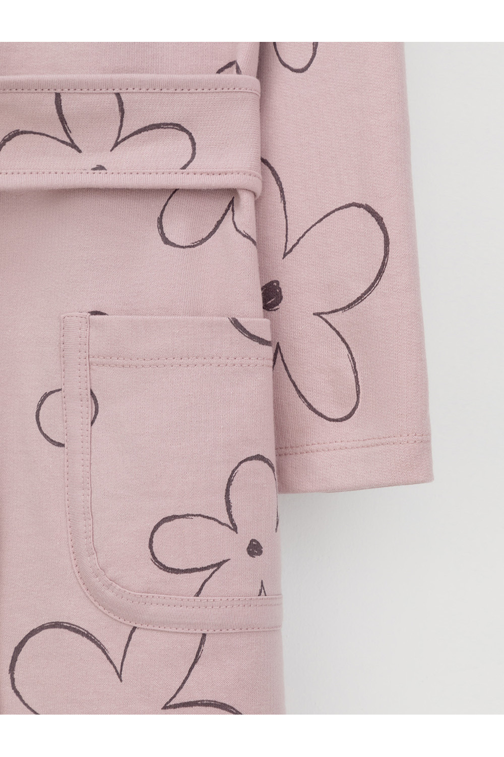 Халат с тонким капюшоном. Изготовлен из набивного хлопкового трикотажа футер петля. С помощью пояса можно регулировать посадку по фигуре. Сверху застёжка на кнопку. Края изделия обработаны мягким кантом. На боку накладной карман, уходящий в шов. Оригинальная набивка выполнена из стойких гипоаллергенных текстильных красителей. Все трикотажные полотна производятся в соответствии с нормами швейцарского сертификата ЭкоТекс.