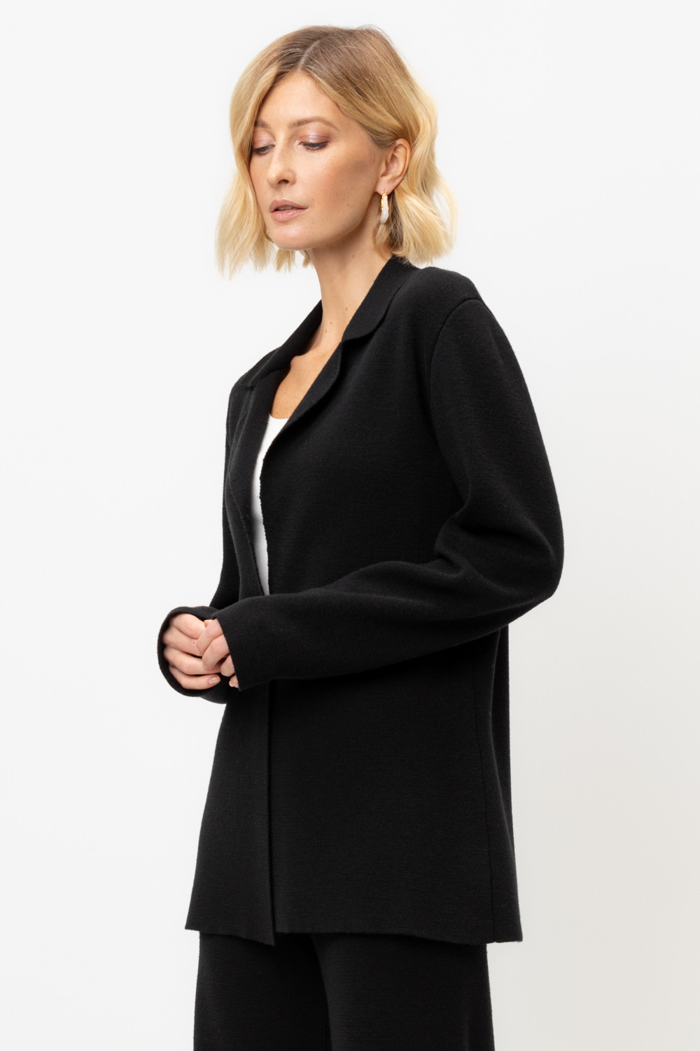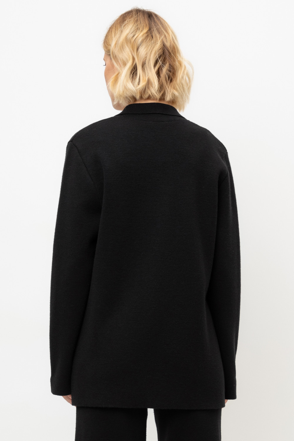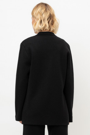 Женский жакет прямого кроя связан комбиниркой. Шерсть мериноса в составе сохраняет тепло, акрил делает изделие мягким. Прямой силуэт идеально подходит как к юбке, так и к брюкам.