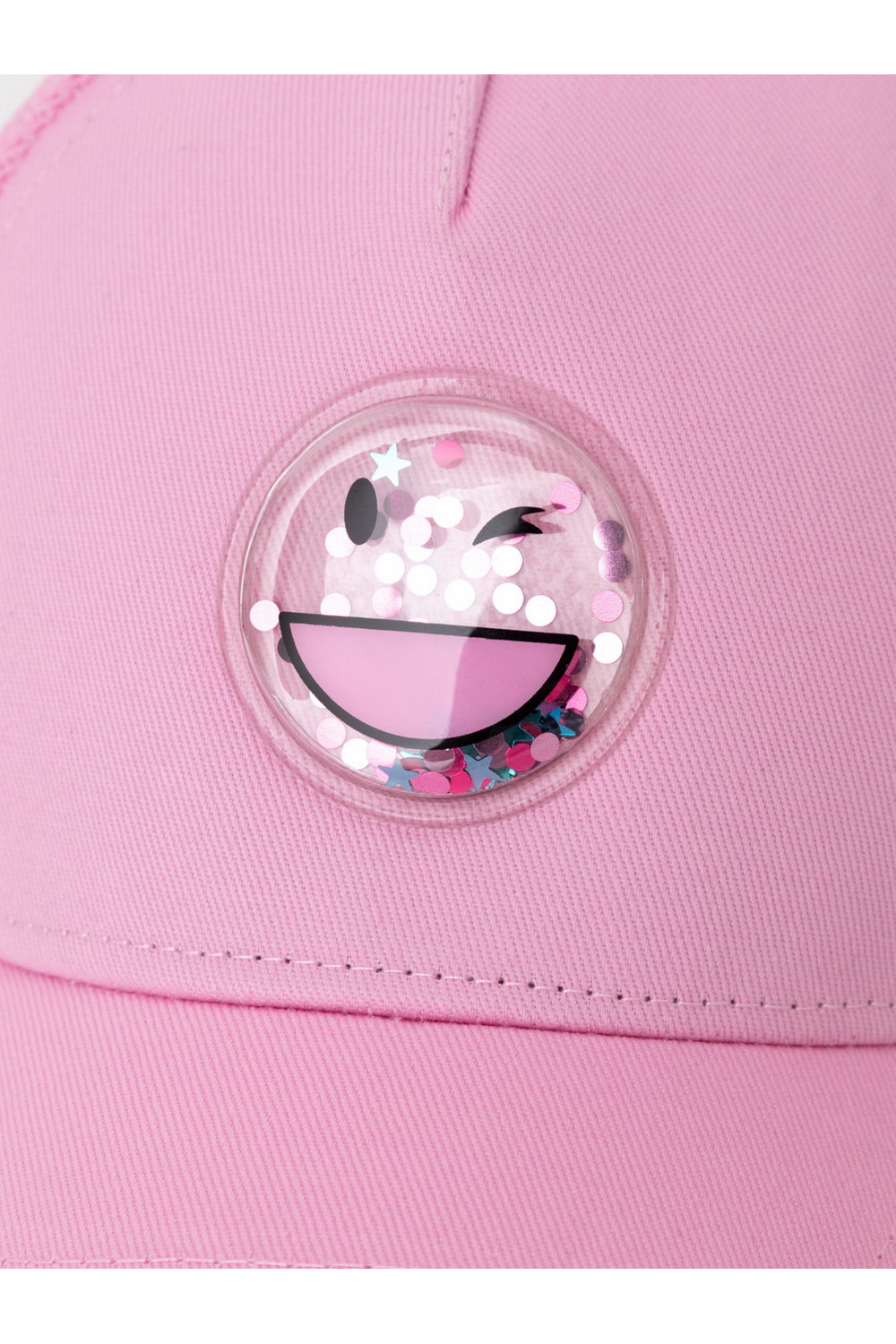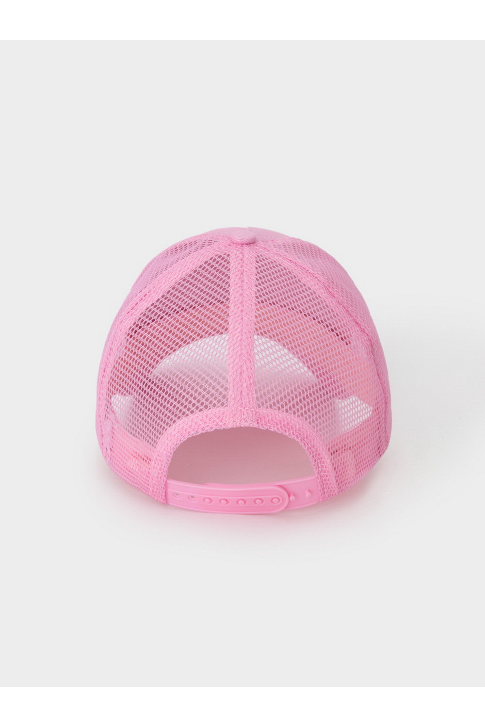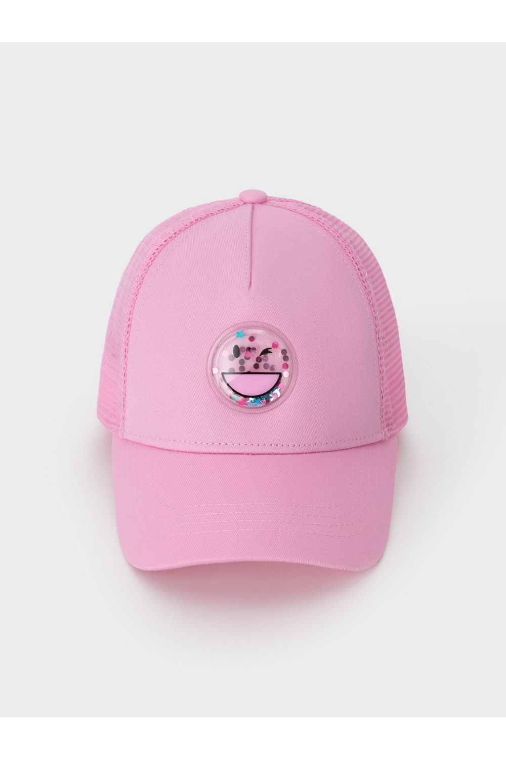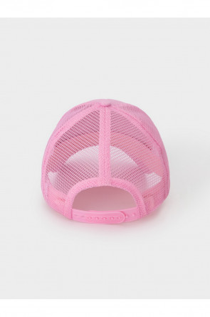Кепка для девочки из текстиля и сетки. Спереди украшена оригинальной нашивкой с блёстками. Регулируется по ширине головы и фиксируется на затылке с помощью пластиковой застёжки.