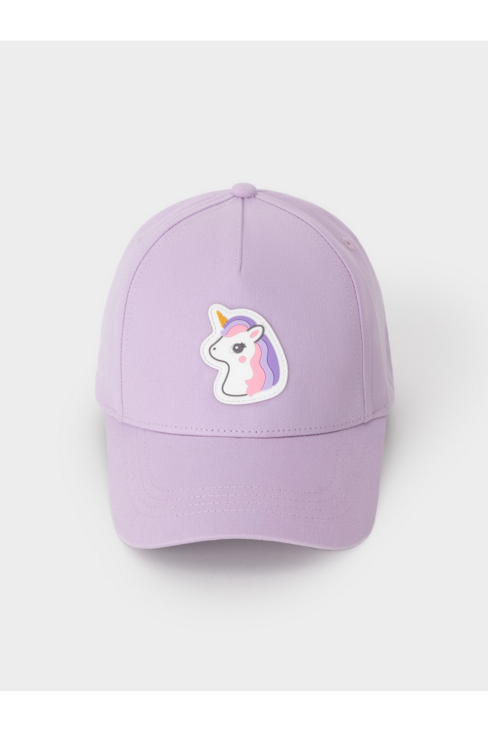 Кепка для девочки из натурального хлопка. Спереди украшена оригинальной нашивкой. Регулируется по ширине головы и фиксируется на затылке с помощью металлического зажима.