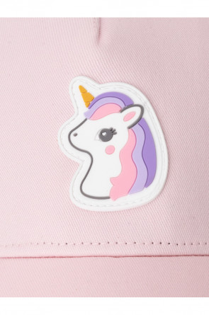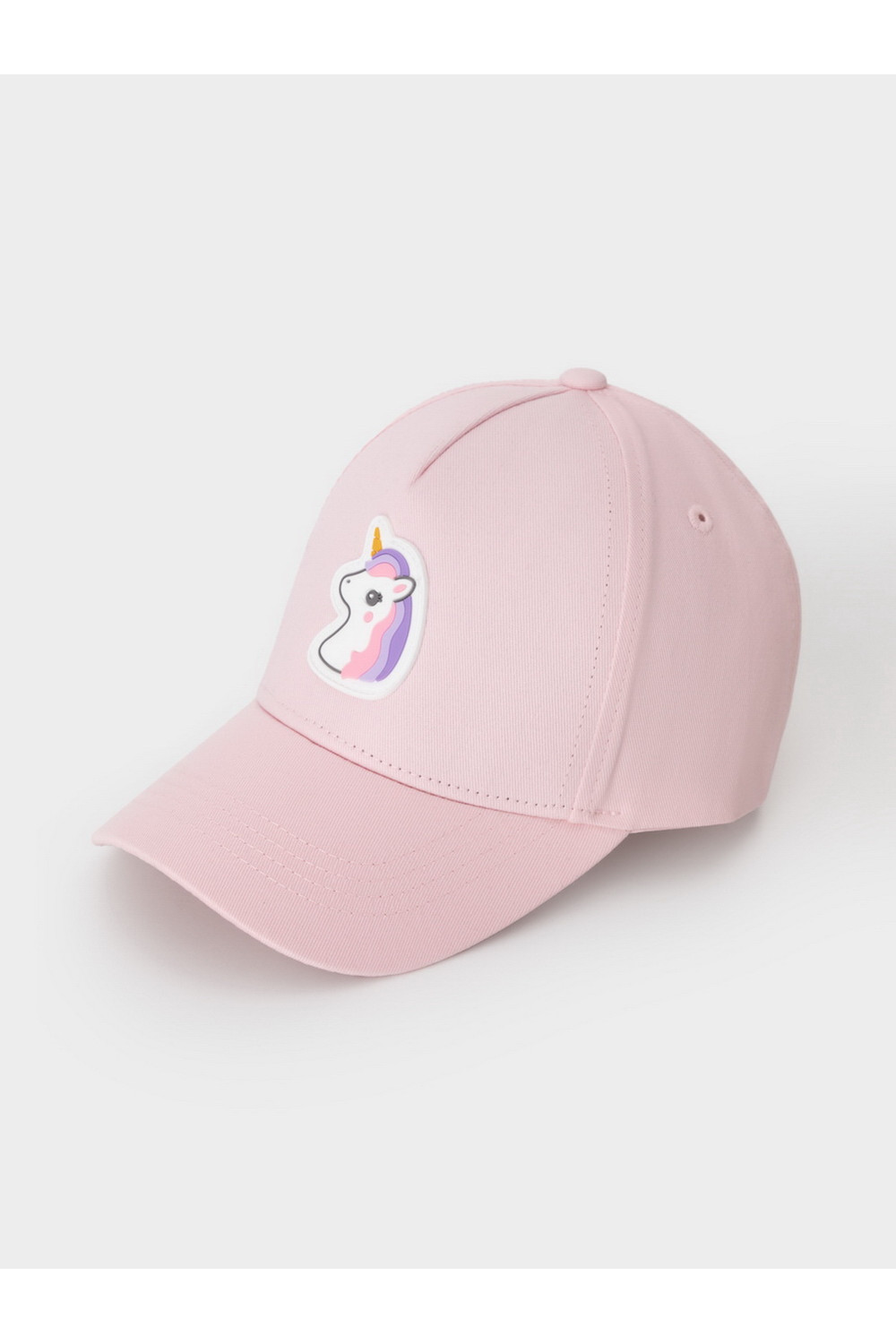 Кепка для девочки из натурального хлопка. Спереди украшена оригинальной нашивкой. Регулируется по ширине головы и фиксируется на затылке с помощью металлического зажима.