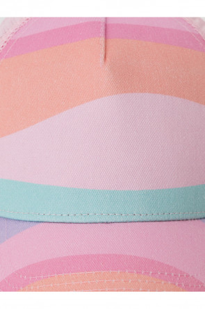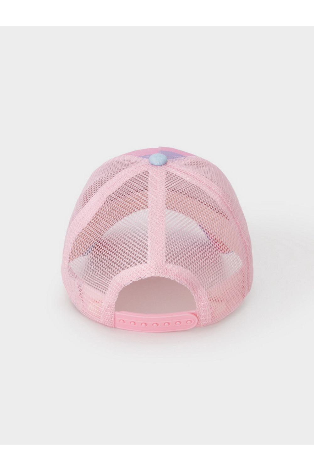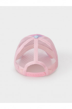 Кепка для девочки из текстиля и сетки. Оригинальная набивка выполнена из стойких гипоаллергенных текстильных красителей. Регулируется по ширине головы и фиксируется на затылке с помощью пластиковой застёжки.