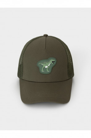 Кепка для мальчика из текстиля и сетки. Спереди украшена оригинальной нашивкой. Регулируется по ширине головы и фиксируется на затылке с помощью пластиковой застёжки.