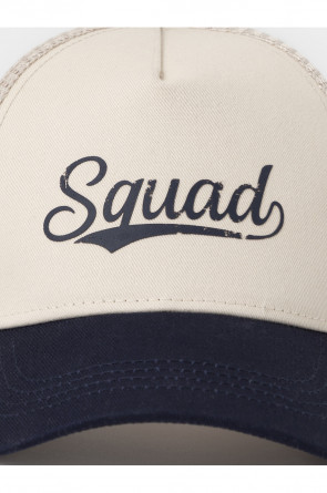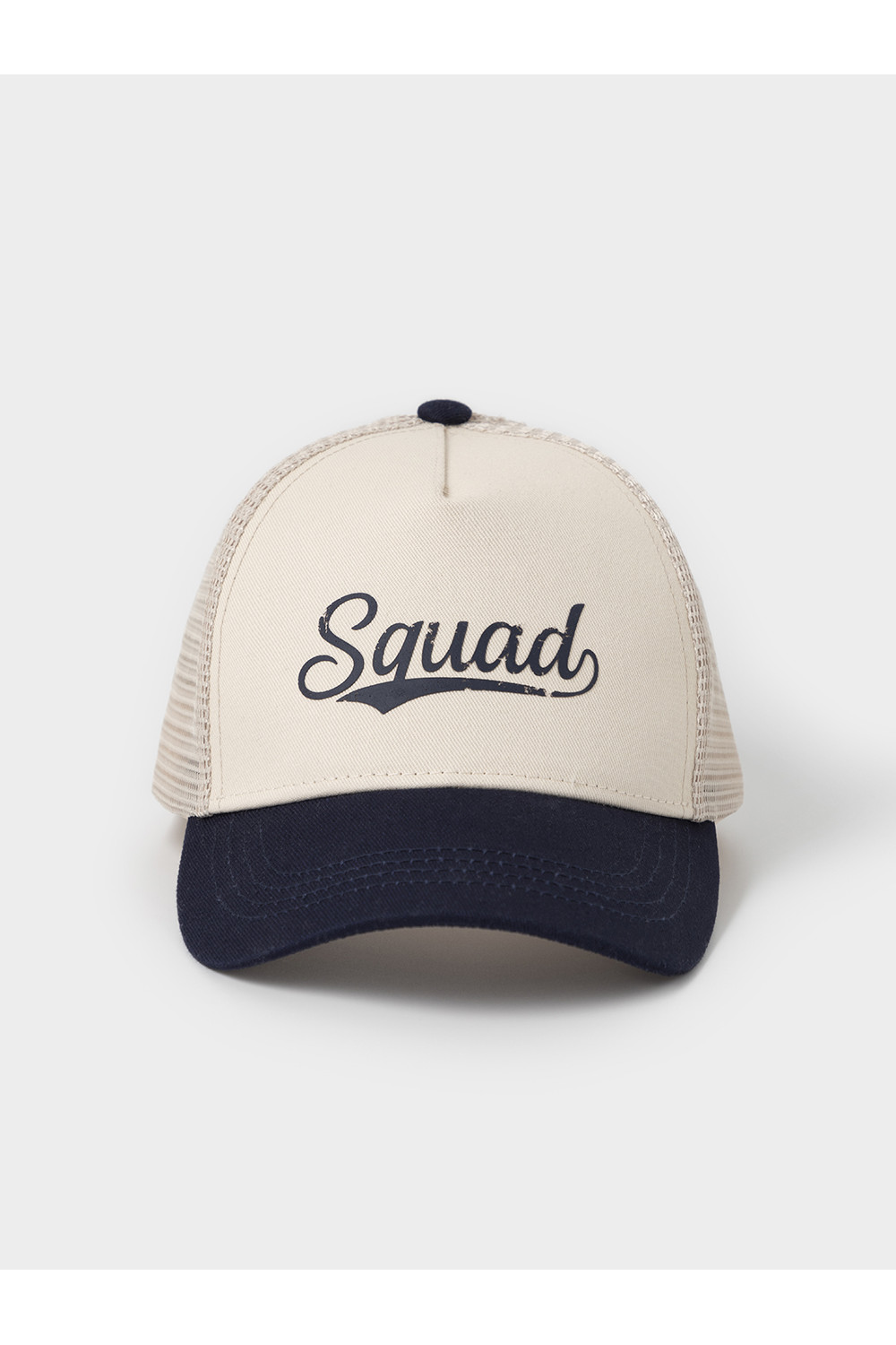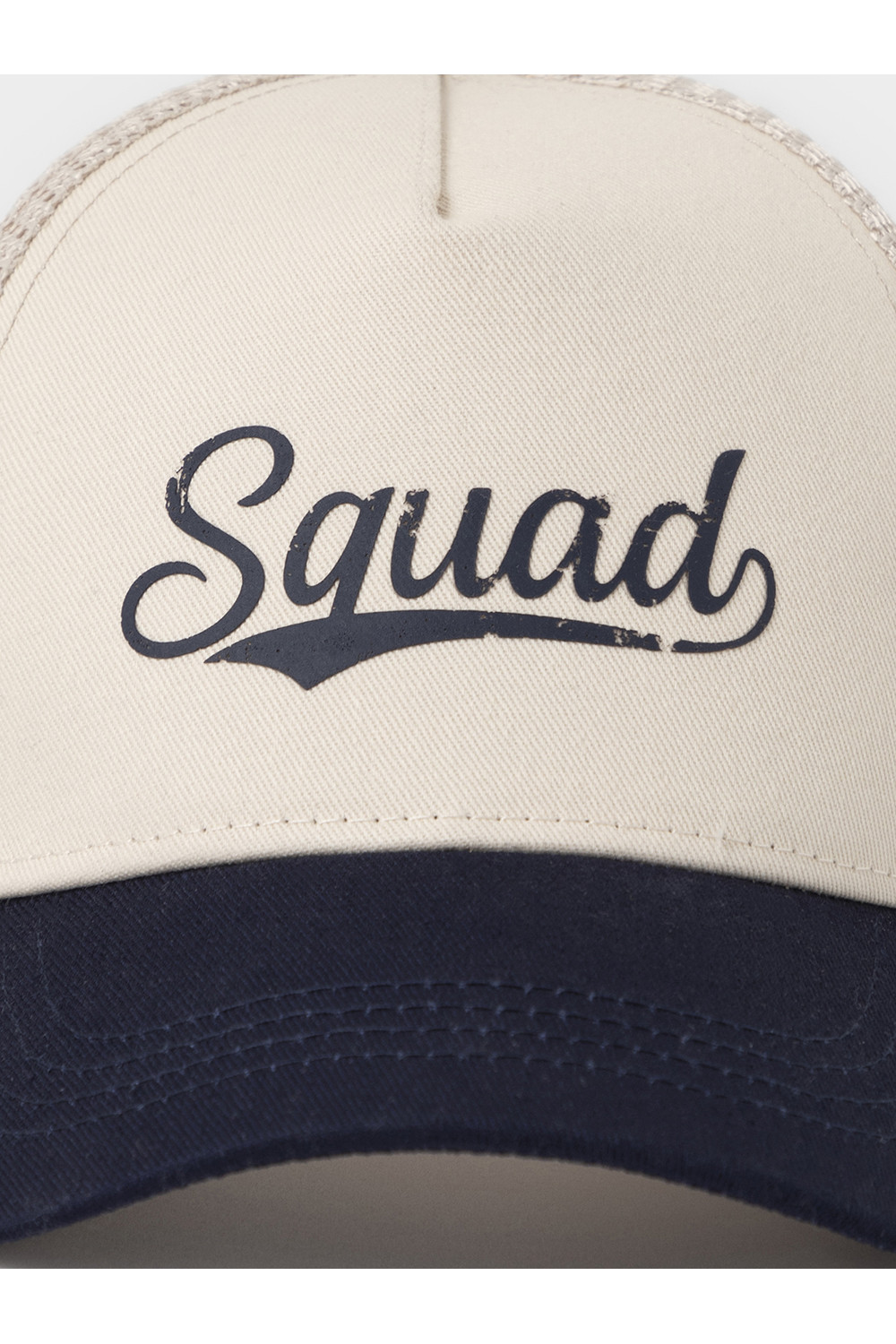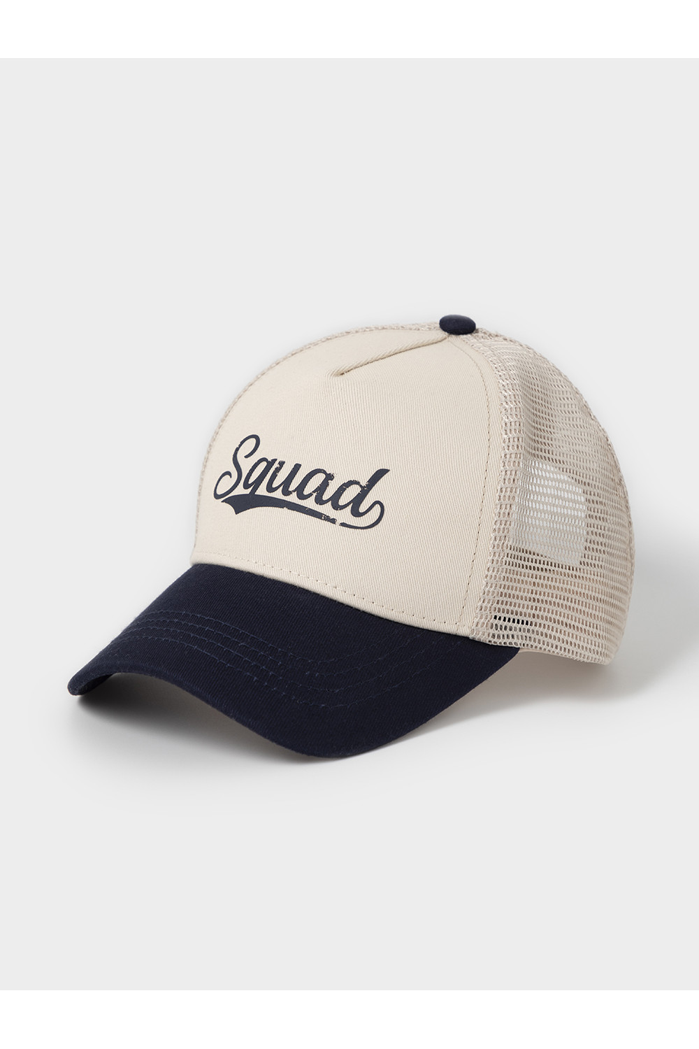 Кепка для мальчика из текстиля и сетки. Спереди украшена оригинальным принтом. Регулируется по ширине головы и фиксируется на затылке с помощью пластиковой застёжки.