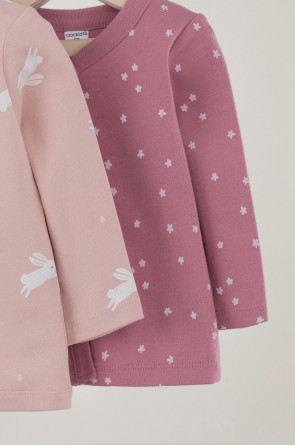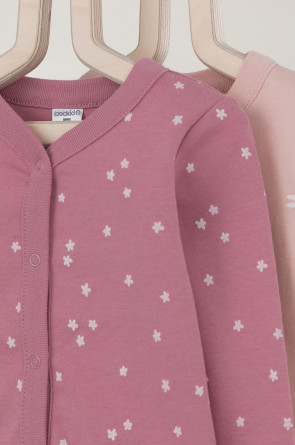 Кофточки для новорождённых из мягкого эластичного трикотажа интерлок, произведённого из натурального хлопка. В упаковке 2 штуки. Застёгиваются спереди на кнопки. В размере 56 на рукавах предусмотрены отвороты, швы выполнены наружу. Оригинальная набивка выполнена из стойких гипоаллергенных текстильных красителей. Все трикотажные полотна производятся в соответствии с нормами Швейцарского сертификата ЭкоТекс.