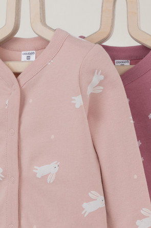 Кофточки для новорождённых из мягкого эластичного трикотажа интерлок, произведённого из натурального хлопка. В упаковке 2 штуки. Застёгиваются спереди на кнопки. В размере 56 на рукавах предусмотрены отвороты, швы выполнены наружу. Оригинальная набивка выполнена из стойких гипоаллергенных текстильных красителей. Все трикотажные полотна производятся в соответствии с нормами Швейцарского сертификата ЭкоТекс.