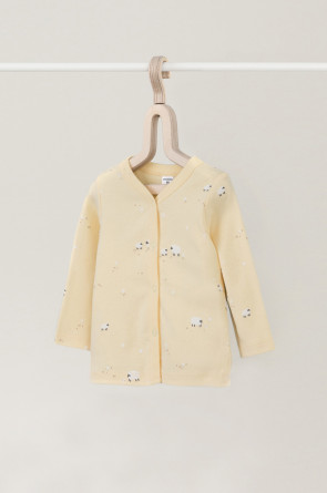 Кофточка для новорожденных из мягкого, эластичного трикотажа, произведенного из натурального хлопка. Изделие застегивается на кнопки. Оригинальная набивка выполнена из стойких, гипоаллергенных текстильных красителей. Все трикотажные полотна производятся в соответсвии с нормами Швейцарского сертификата ЭкоТекс.