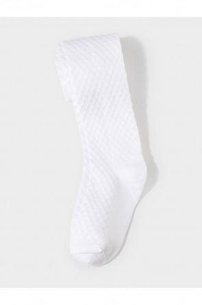 Колготки детские однотонные с формованной пяткой и эластичной резинкой в поясе. Связаны ажурным узором.