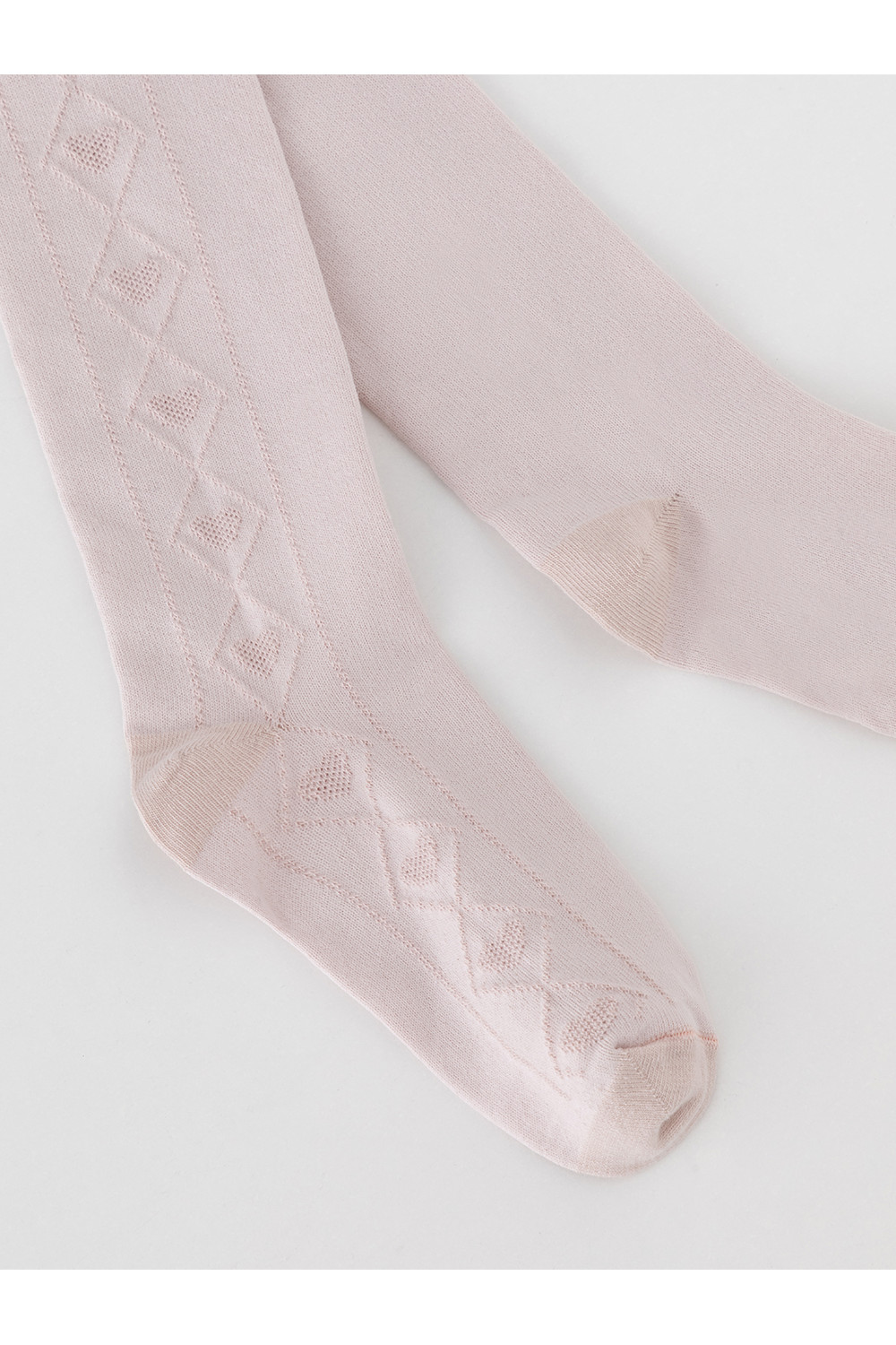Колготки для девочки однотонные с формованной пяткой и эластичной резинкой в поясе. Связаны ажурным узором.